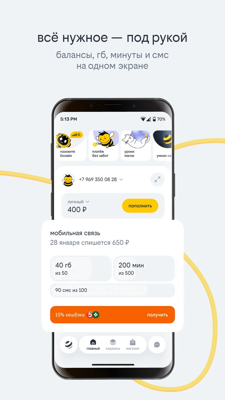 Билайн — бесплатное и полезное мобильное приложение, в котором можно быстро получать доступ к услугам связи, выбирать тариф и знакомиться с условиями действующего, платить с банковской карты или иным способом пополнять баланс, связываться с диспетчером (службой поддержки) и другое.